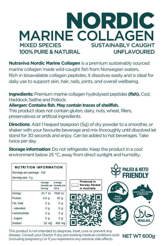 Embracing sustainability and quality, Nutraviva Marine Collagen powder is certified by the Marine Stewardship Council (MSC), ensuring responsible sourcing. Our products are not only naturally organic and GMO-free but also cater to diverse dietary preferences, making them suitable for those following halal, paleo, ketogenic, or pescatarian lifestyles.