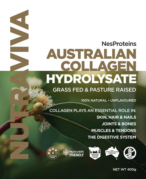 Nutraviva Australian Collagen Hydrolysate is made from 100% pure, Australian-sourced hydrolysed collagen powder. Proudly produced in Central West, NSW, this product represents the highest quality collagen peptides available - supporting whole-body health, from the inside out.